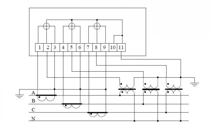 Как подключить трёхфазный счётчик через трансформаторы тока